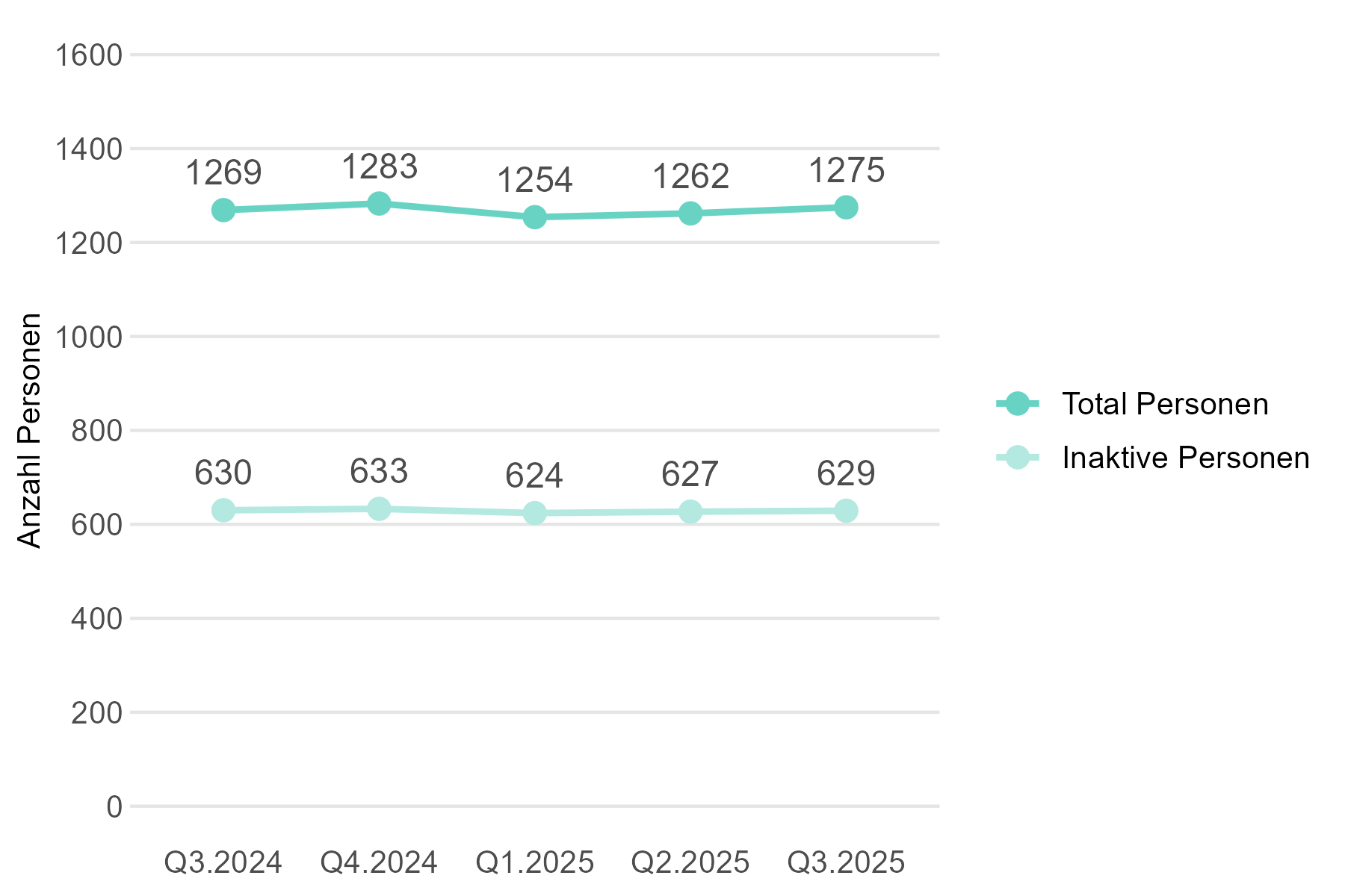 Anzahl Personen auf der Warteliste | 1275 | +13 Personen (+1 %) |
